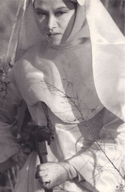 ※ 私の作品たちはみな個性的で、ご覧頂いた方々の好みも激しいようですが、ともあれ45年前に誕生した『無人列島』があってこその≪かない勝丸プロダクション≫~~右は尼僧を演じる河西都子。