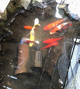 最初の≪人災≫は、近所の男の子たちによって魚が盗られましたが、こちらはまだ可愛い仕業でした!
