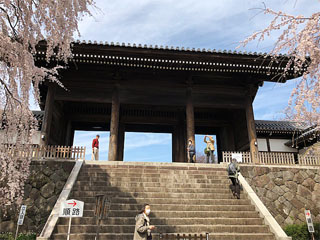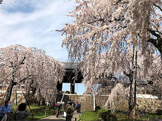東郷寺の名物=枝垂桜 枝垂桜と山門 石段と山門 「羅生門」のモデルとなった