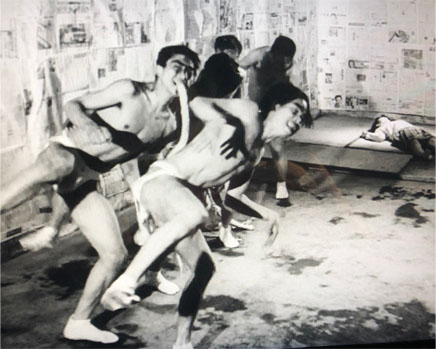 加藤さんと≪ゼロ次元商会≫の社員でもあったパフォーマーの永田さん、松葉さん、上條さんと先述の重臣さんは、新聞紙で張り巡らされたアパートの一室で日出国に犯され殺害された団地妻から次々と出産してくる子供たちの役~~この出産シーンはほぼ加藤さんの指導の下に行われました:-))))))))))