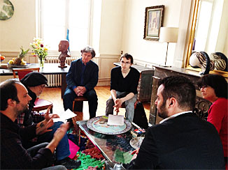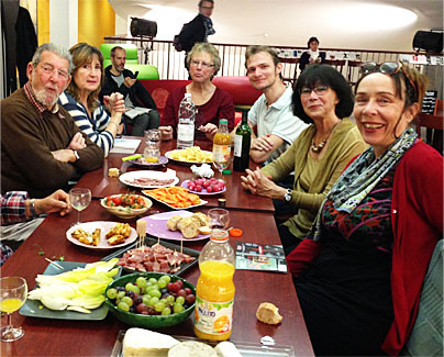 実は、ボルドーで活躍する詩人:ガエタンさんの作品「第五の歌」の一章の日本語訳を私が朗読することになりましたが、ここでは英語がほとんど通じないためその打合せにも困窮~~が、そこにゴテイェ君という京都の大学に留学していたことのある青年が駆け付け、通訳をしてくれたので大いに助かったという次第です!