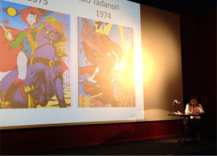 先ずエスメラルダさんによる紹介の後、石川さんはスライドを使いながら日本におけるシュルレアリスムの歴史などを流暢なフランス語で語りだします。