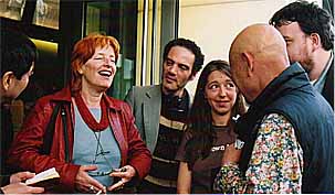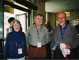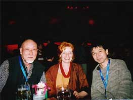 映画祭のお別れパーティー ハートさんを囲んで山田さんと ※ このHPには仏語や独語のソフトは入っていないので、人名など正確な表記が出来ておりません――悪しからず。