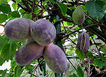 | 第8回展示会 「仰天!アケビが50個〜 !!」 (正式にはミツバアケビ) 2006.10.4 撮影:2006年10月 場所:自宅の庭 |