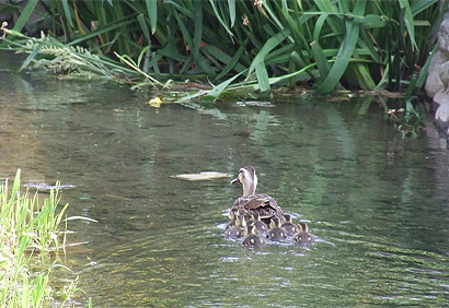 | 第9回展示会 「あのカルガモ一家が再度登場〜 !!」 2007.5.25 撮影:2007年5月 場所:近くの水路 |