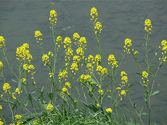 黄色小形の十字花をつける。葉は辛味があ