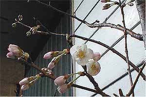 そんなわけで我が家の植物たちもてんてこ舞い 〜〜 フキノトウが顔を出すと梅とサクランボとがほぼ同時に開花しました。