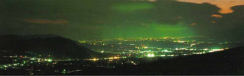 北斎の肉筆画を思い出しながらの、〈遠見の湯〉からの眺めはまた一入(ひとしお)〜〜 眼下に信濃路の街の灯がちかちかと瞬きます。