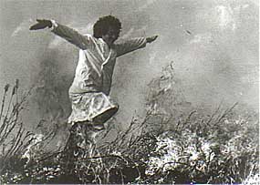 それから数日後にIF(の授業)で後者(『時が乱吹く』)を見ましたが、その印象は一変〜〜親馬鹿かも知れませんが、その時には「誇れる息子」を感じました。『王国』のプリントは、パートカラーのカラー焼きで、モノクロ撮影の部分をブルー(ブルーかセピアかの二者選択)にしたことを後悔しておりましたが、ほぼ30年経った今は、そのブルーが退色によってカラー撮影の部分と非常に良く溶け合っていて気持ちよく見られました。