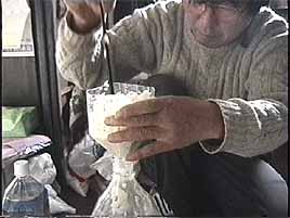 同様に、一昨年「16ミリ講座」を受講し、昨年本科生となった大野聡司君(24期生)は『団地酒』というパーソナル・ドキュメンタリーをつくって、それが2000年度卒業展の入賞作品となっています。ところで、その大野君の『団地酒』――、