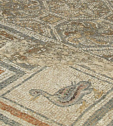 そこには大理石の大きな建築物が立ち並び、馬車が通ったであろう大通り(= クレテス通り)〜〜 その通りの左脇には何と歩道もあって美しいタイルの文様と水鳥が描かれていました。