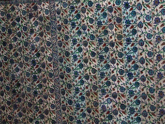壁に嵌め込まれた青緑を基調とするタイル装飾からきている