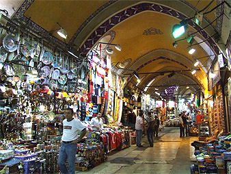 旧市街にあるグランド・バザールを覗くと、金銀、宝石などの装飾品、絨毯、陶器、布地、革製品などトルコ中のあらゆる産物を扱う店が犇めき合っていました。