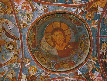 〜〜 ともあれ凄い!この岩山の付近には、幾つもの修道院や教会があった! ドームの天井に描かれていたのは、キリストの肖像