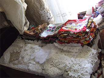 先人たちの知恵が引き継がれた、快適な住居 この家の娘さんが作った〈お嫁入り道具〉の品々 一方こちらは、岩山を刳り貫いて造られた洞窟ホテル 鑿跡も鮮やかな内装〜〜 カッパドキアならではの 粋なルーム!