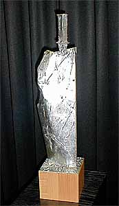 「ブリキの彫刻」を受取る大賞の大門未希生受賞者たち (左から)大久保京子・山内洋子・