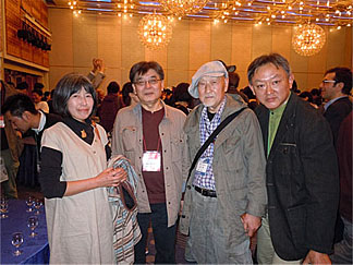 ※ 右はオープニング・パーティ~~ 左より和田辛子(IF1期生)、村山匡一郎(映画評論家・IF専任講師)、小生、加藤到(IF1期生・東北芸工大准教授)