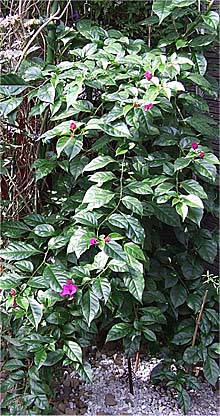 前にもお伝えしましたが、冬の気温が都心より5度は低い高幡不動の我家の庭に、常夏の植物=ブーゲンビリアが逞しく枝を伸ばしました:-))))))))))